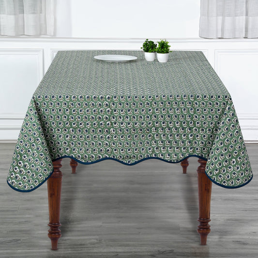 White Cotton Percale Scalloped Piping & Border Home decor Rectangle Tablecloth Washable Polycotton Table Cloth in Embroidery/Piping Border