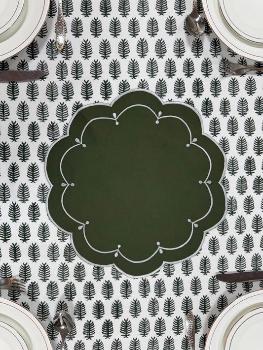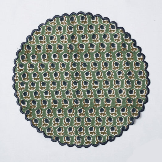Sage Green Flower Placemat, 'Block Print' fabric table mat easy care, TABLE DECOR, washable rustic kitchen decor dining mat