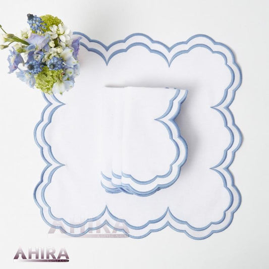Table mat Scallop Placemats and Napkins light blue ,Table Linens Piping Napkins fathers day gift