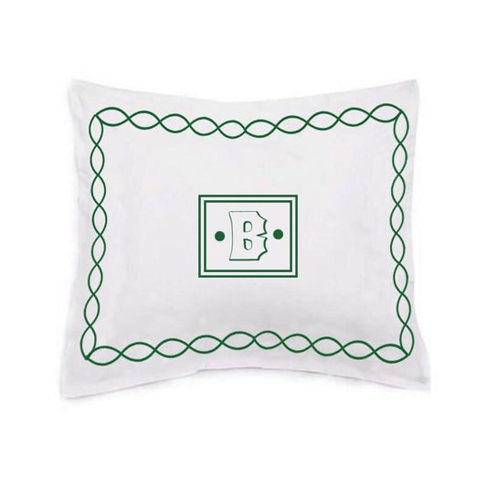 Monogram 400 Thread Count White Cotton Sateen Hotel Stitch Pillow Sham with 2-inch flange Chain Embroidery Border (Set of 1)