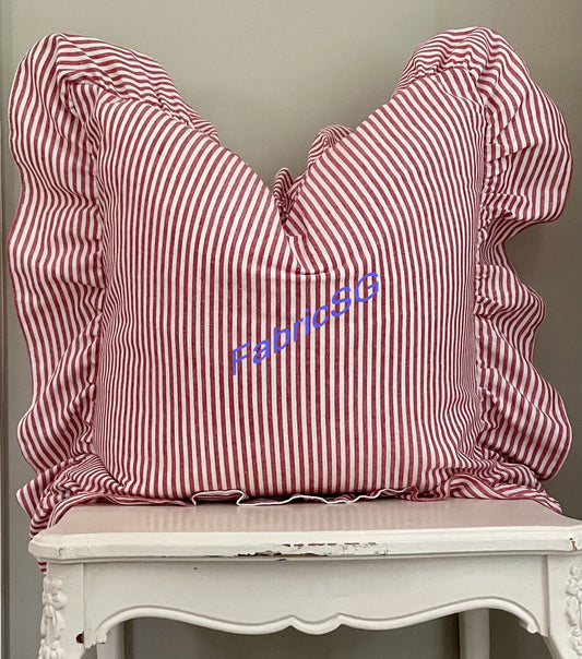 Red and Cream Stripe Ruffle Christmas Pillow Cover, Cottage Chic Ticking Cushion, French Farmhouse Holiday Decor