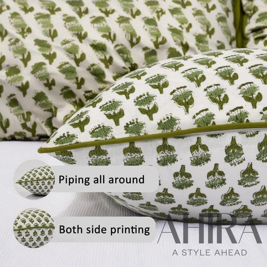 Indian Hand Block Printed Cotton Throw Pillow Cover for Farmhouse, Preppy, Boho, Home Décor, Floral, Decorative Couch Pillow- Emerald Green