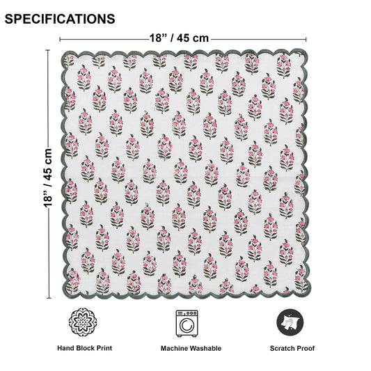 Punch Pink and Army Green Scallop Embroidery Napkins
