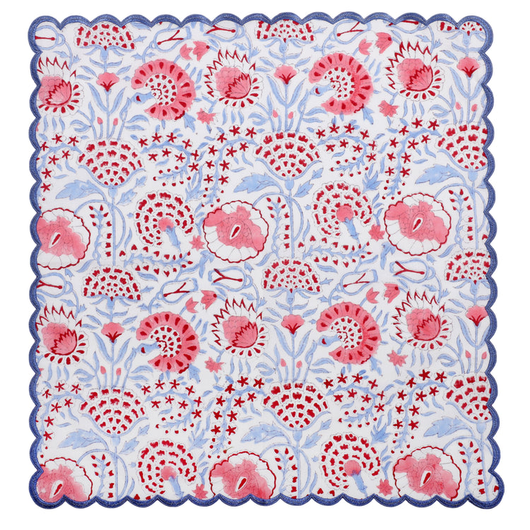 Garnet Red Cherry Print Scallop Embroidery Napkins