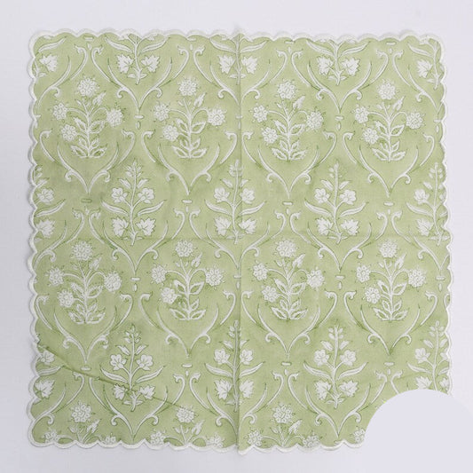 Denim Blue and Army Green Scallop Embroidery Napkin