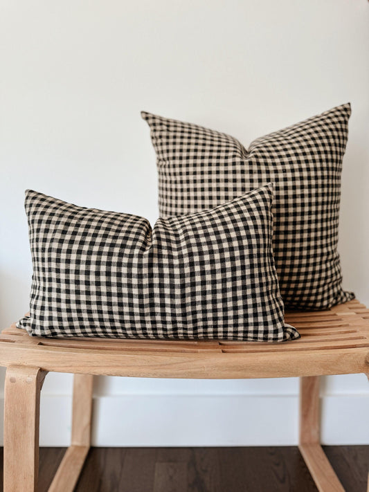 Black & Tan Gingham Linen Pillow Cover