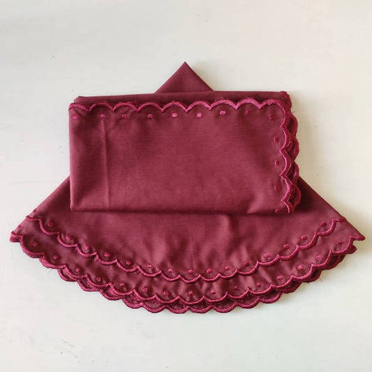 Linen Scallop Cotton Napkins + placemats with Trimming embroidered, Set of 2, Scallop edge Napkin, Linen Sustainable Cloth Napkins