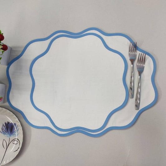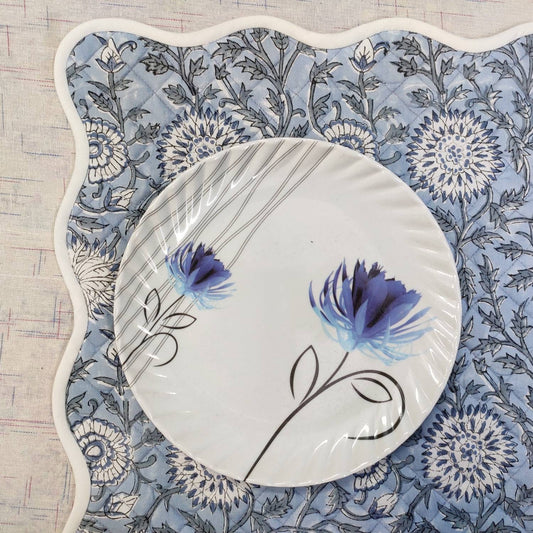 Table Mat Blue and White India Block Print Quilted, Piping Placemats, Scallop ,Set of 2 personalized gifts for mom, Coffee Table Decorwave