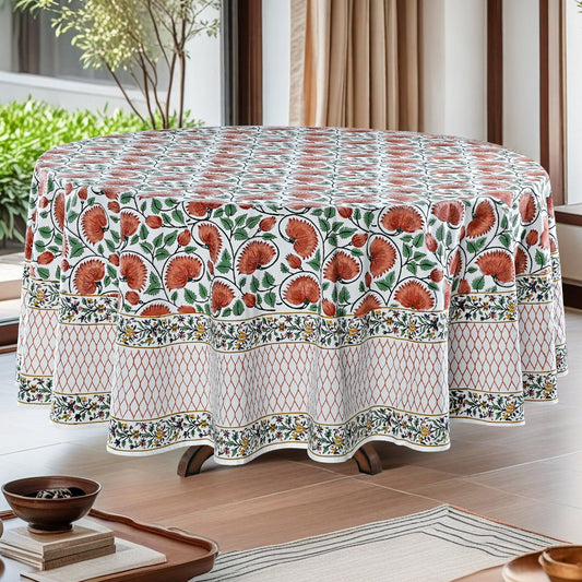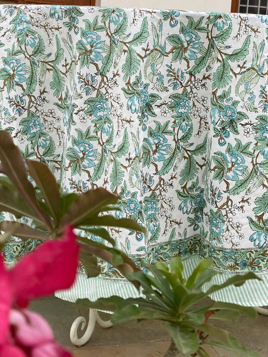 Emerald Green Handmade Cotton Block Print Round Tablecloth - Machine Washable Spring & Easter Gift