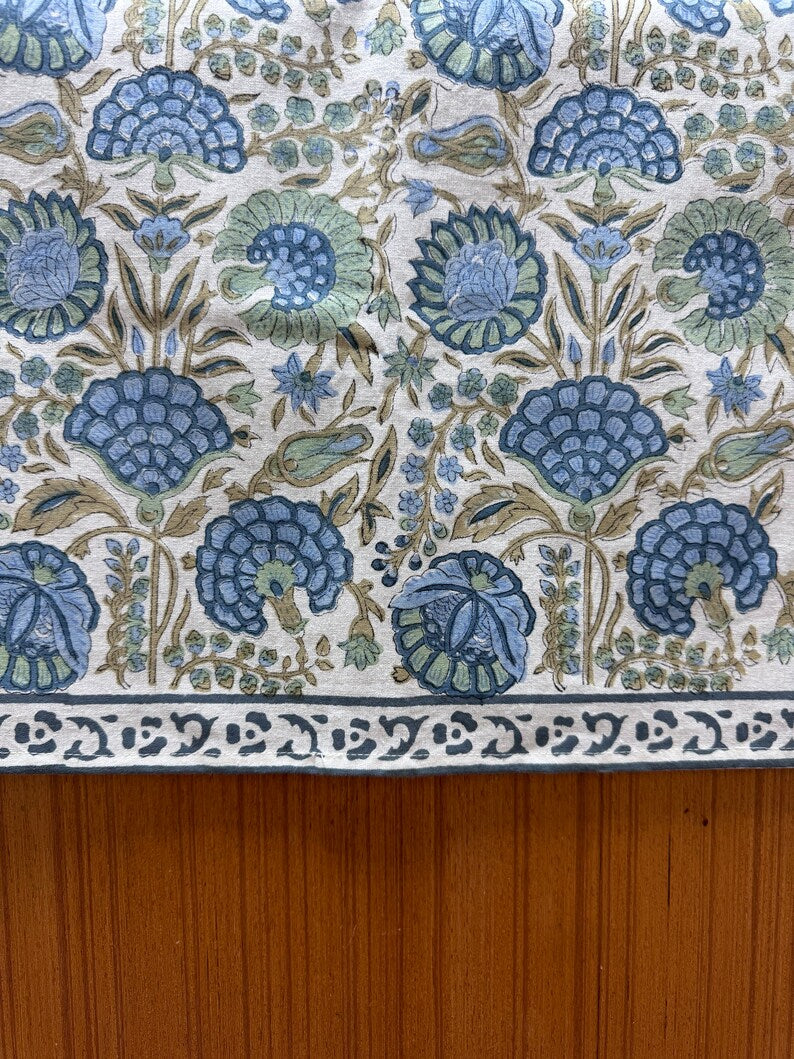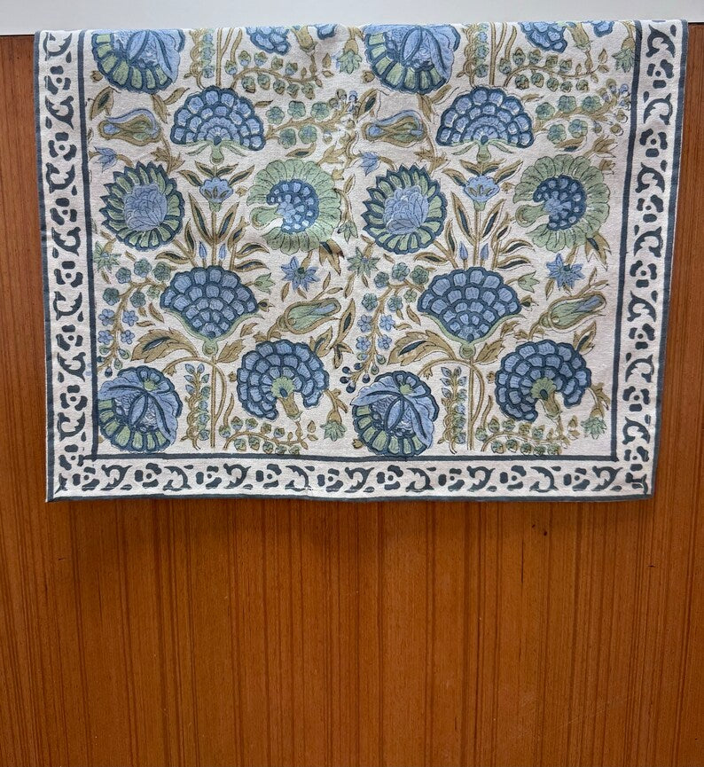 A gorgeous Runner made with 100% cotton fabric is a must-have to enhance the decor and ambience of your dining table or side table. It features an elegant Indian Floral Block Print design in various colours and shades contrasting on an elegant background with an extraordinary border pattern. This 100% cotton runner is a perfect fit and essential to compliment your dining ensemble's decor.