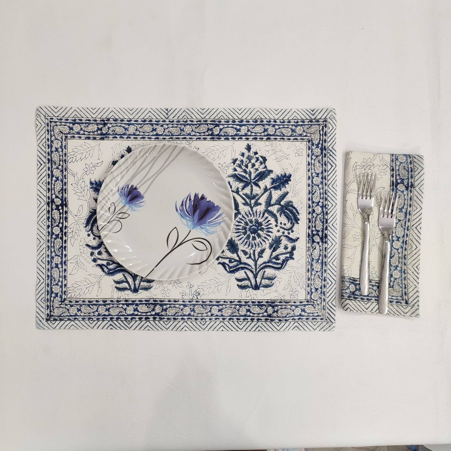 Cotton printed Mats Table Linens floral 6 Napkins and 6 Cotton Table Placemats ,Indian Floral Hand Block Printed Set