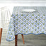 Light Blue Indian Hand-Block Printed Cotton Tablecloth with Floral Design and Scalloped Piping for Weddings, Home Decor, and Parties