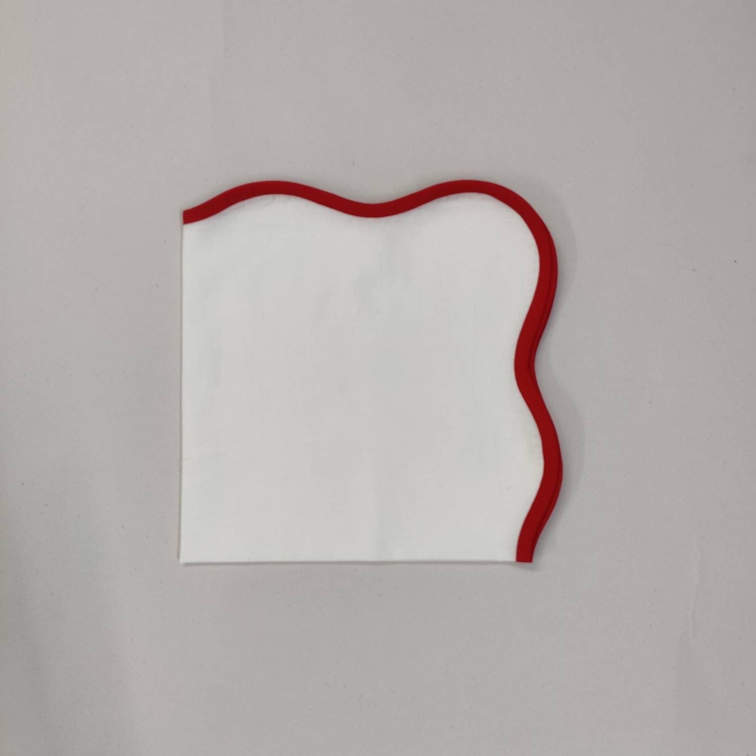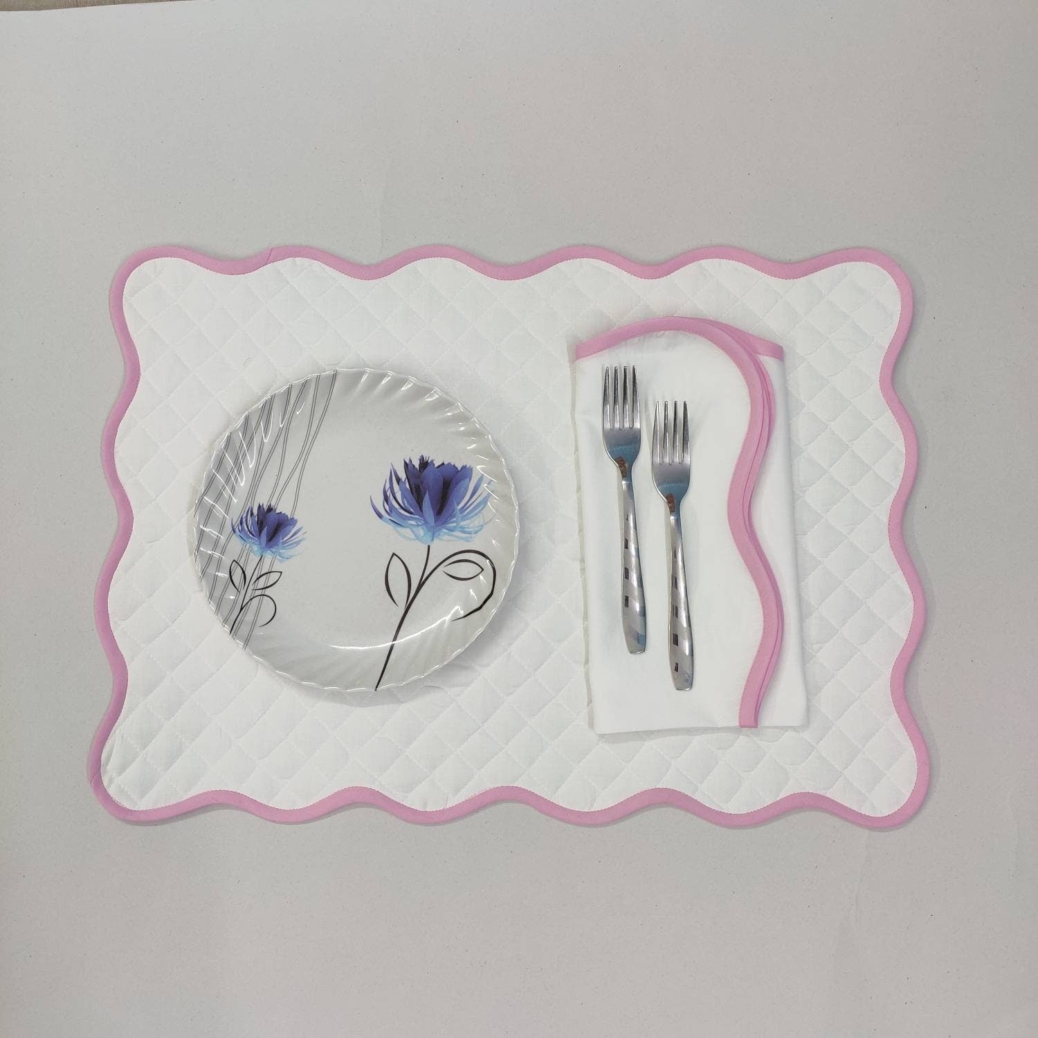 Quilted wave Table Linens PlaceMats White Piping Napkins and Cotton wave scallop cloth cocktail napkins for Dinner Table, Christmas Gift