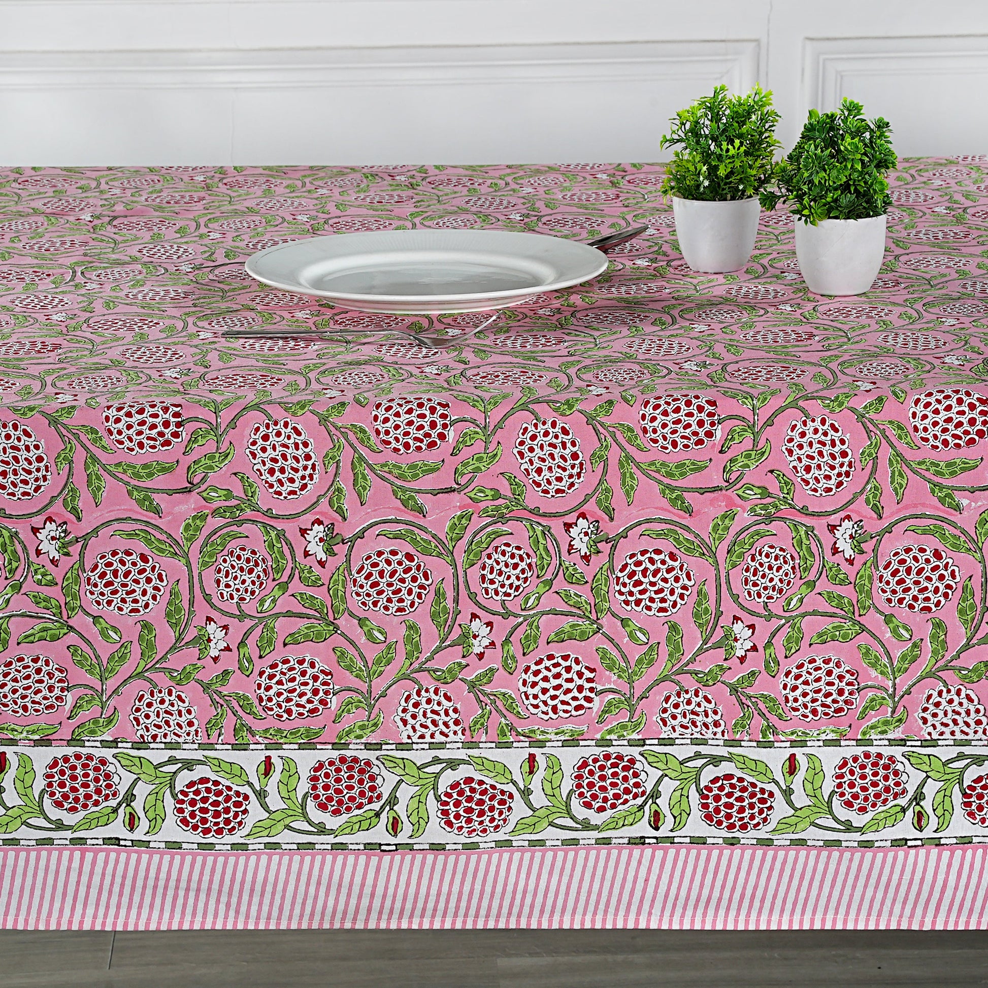 A gorgeous tablecloth made with 100% cotton fabric is a must-have to enhance the decor & ambience of your dining table or side table. It features an elegant Indian Floral hand Block Print design in various colors and shades contrasting on a nice background with a unique border pattern. This 100% cotton tablecloth is a perfect fit and necessary to compliment your dining ensemble's decor.