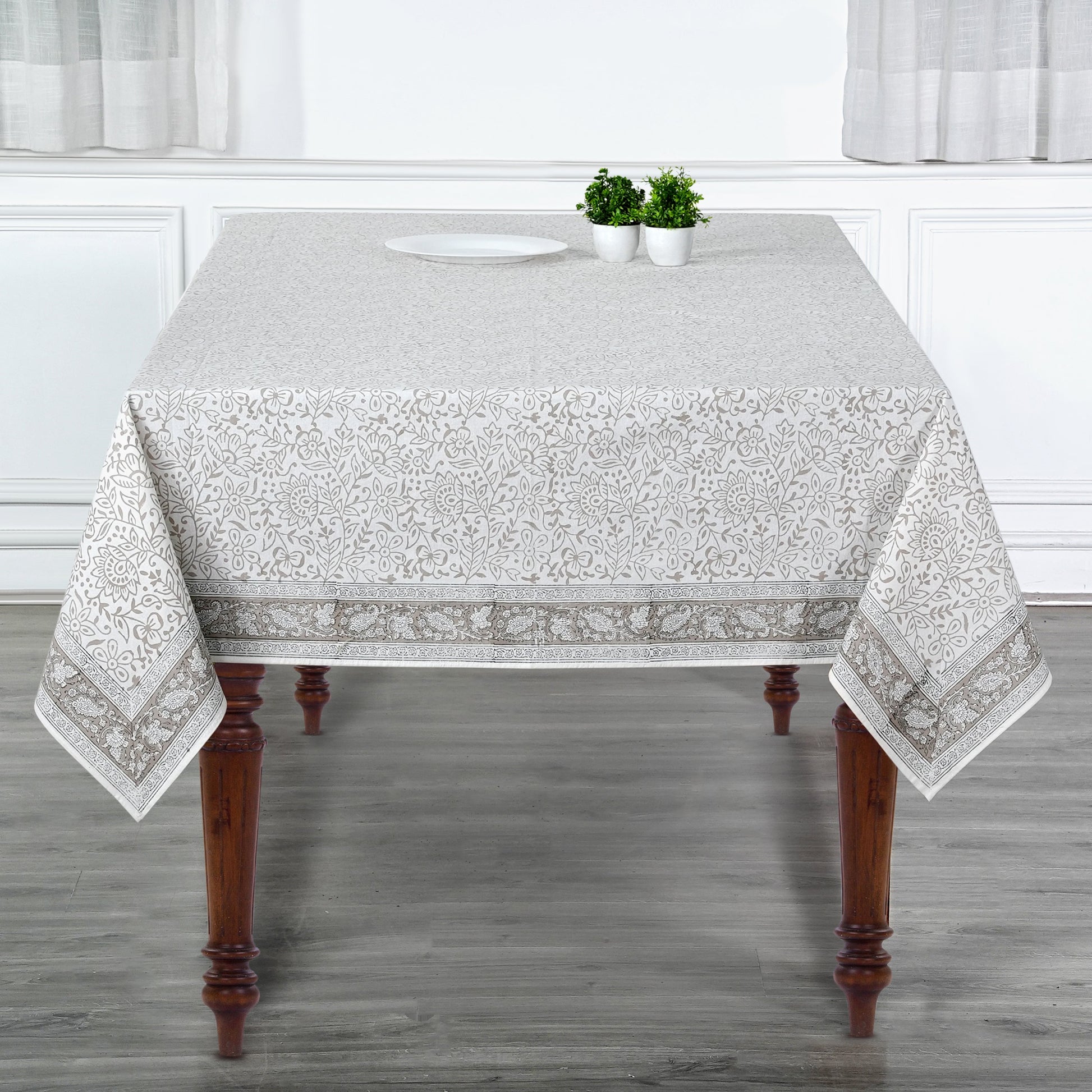 A gorgeous tablecloth made with 100% cotton fabric is a must-have to enhance the decor & ambience of your dining table or side table. It features an elegant Indian Floral hand Block Print design in various colors and shades contrasting on a nice background with a unique border pattern. This 100% cotton tablecloth is a perfect fit and necessary to compliment your dining ensemble's decor.